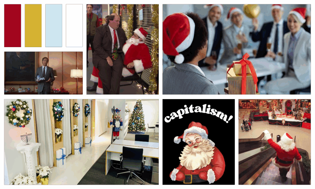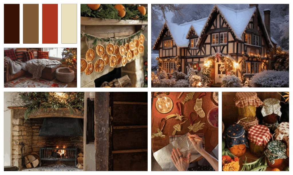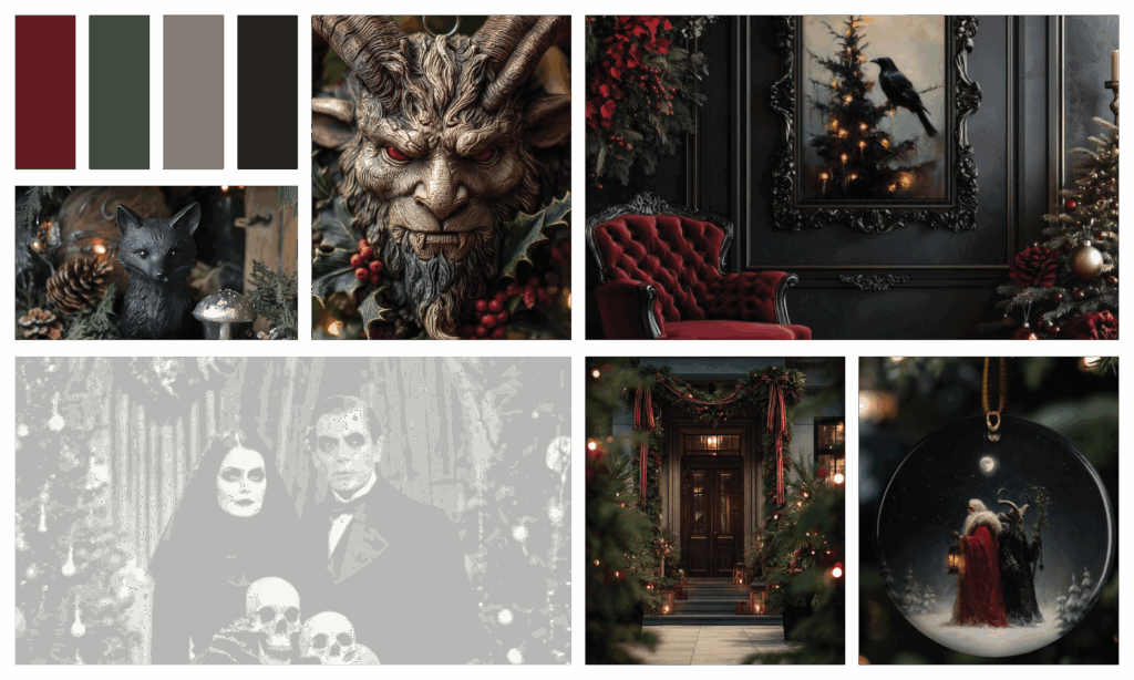 Christmas is strange. We cover our homes in lights, glitter, and tiny figurines, and somehow call it tradition. We made five mood boards to lean into that glorious chaos. Some are charming, some are chaotic.