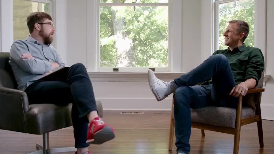 Mr. Mulligan chats with his close friend and leader of Ethos Church, Dave Clayton.