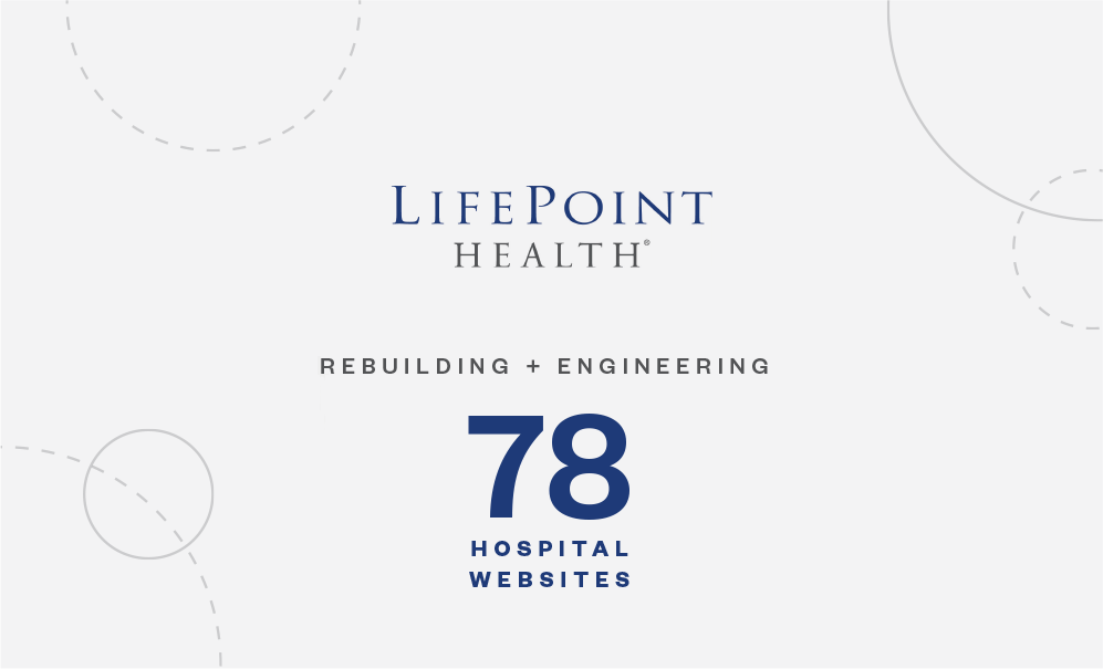 Lifepoint Health is a $5B+ company serving millions of patients across 100+ communities. They needed a new digital platform to build, host, and manage individual websites for all of their locations, maintaining a consistent look and feature set across all sites while providing the flexibility and control to be managed by local marketing teams.