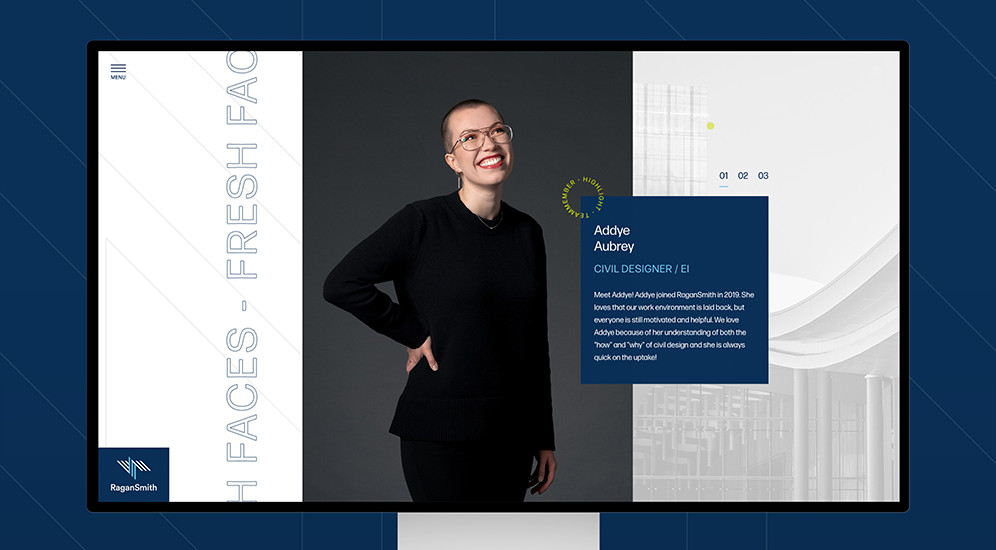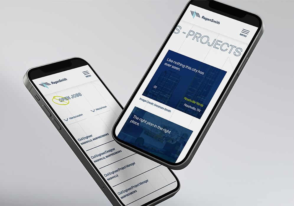 In order to rally both the current team and potential new team members to this change, the name in use since 1971 (Ragan Smith Associates) needed streamlining. The choice to move to simply RaganSmith was an easy one. It’s what already existed in the vernacular both in and outside of the firm. However, just as important as the name was the stance line. Perspective + Purpose speaks to the team’s technical expertise, unique design-driven approach to problem solving, and an obvious passion for doing great work.